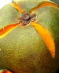 La lúcuma es una fruta pequeña redonda de más o menos 10 cm. de diámetro, de color verde oscuro de aroma muy agradable, su comida es dulce de color amarillo intenso, su textura es harinosa y tiene una pepa o caroso pequeño de color marrón oscuro.